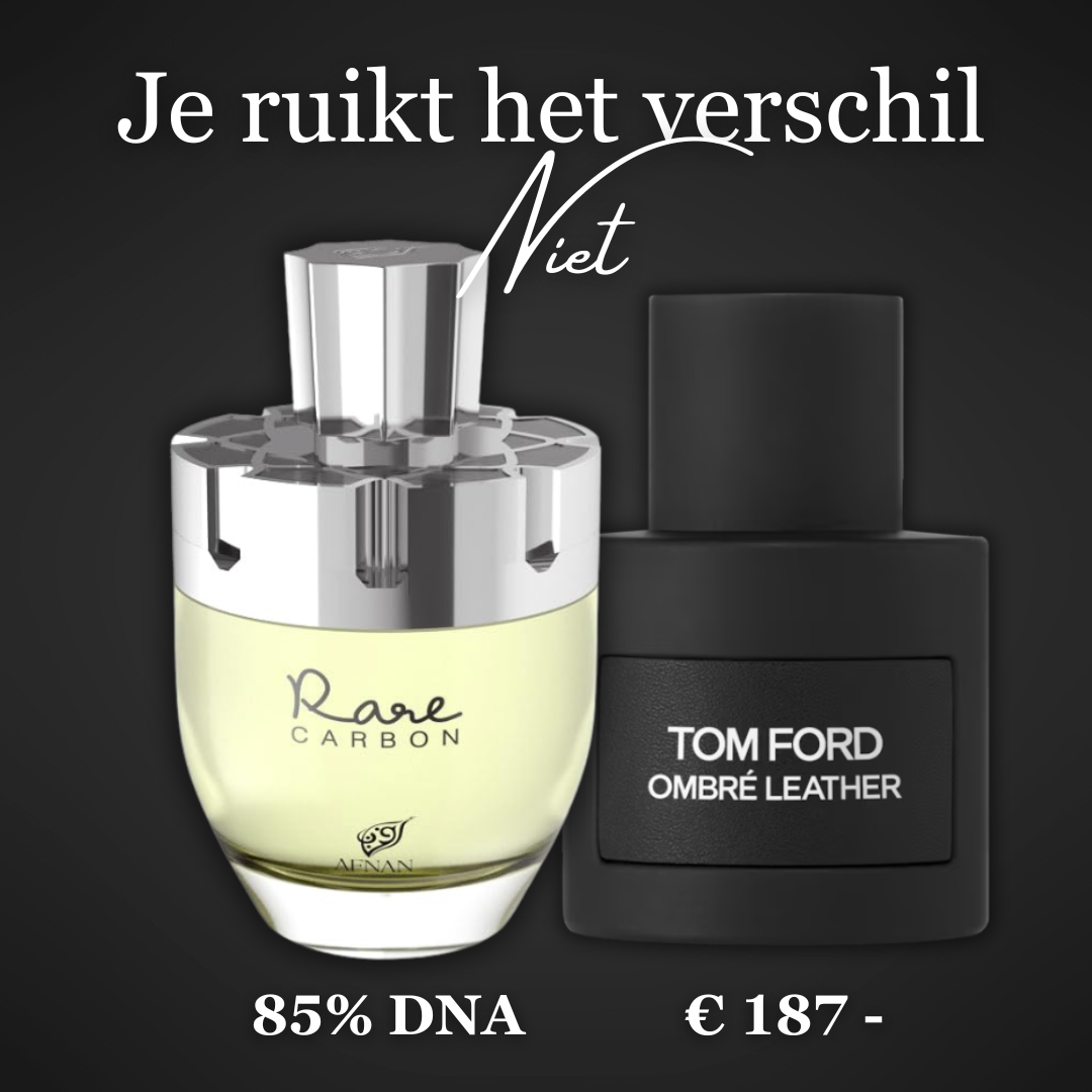 Zoek je die iconische leergeur van Tom Ford Ombre Leather, maar wil je niet de hoofdprijs betalen? Afnan Rare Carbon biedt exact datzelfde gevoel van luxe, mysterie en diepte – voor een fractie van de prijs.
