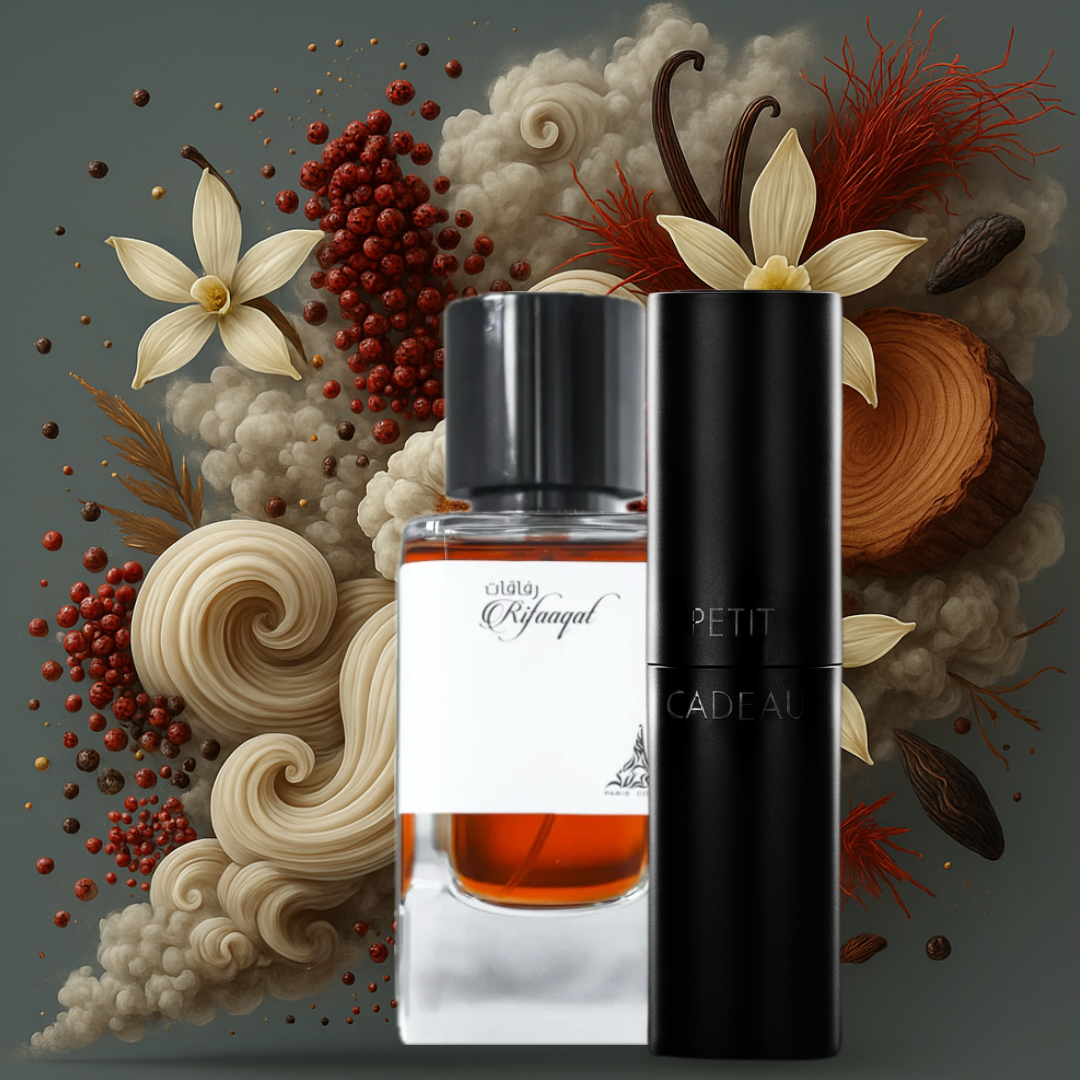 Rifaaqat is een uniseks parfum dat je meteen meevoert naar wereldse vibes. Het begint kruidig en prikkelend met elemi en peppers, gevolgd door een mystiek hart van saffraan en wierook dat een warme, boeiende sfeer neerzet. De zachte, zoete afdronk van vanille en cederhout houdt alles in balans en blijft de hele dag hangen. Ideaal als je een dupe zoekt voor YSL babycat.